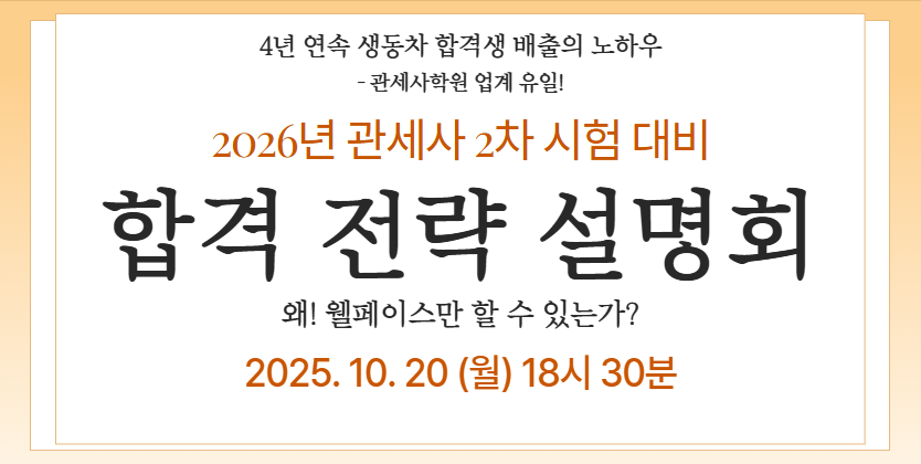 [접수] 2026년 관세사 2차 시험 합격 전략 설명회 안내 - 2025년 합격생 초청
