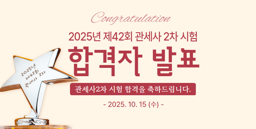 [발표] 2025년 제42회 관세사 2차 시험 합격자 발표 및 통계 안내