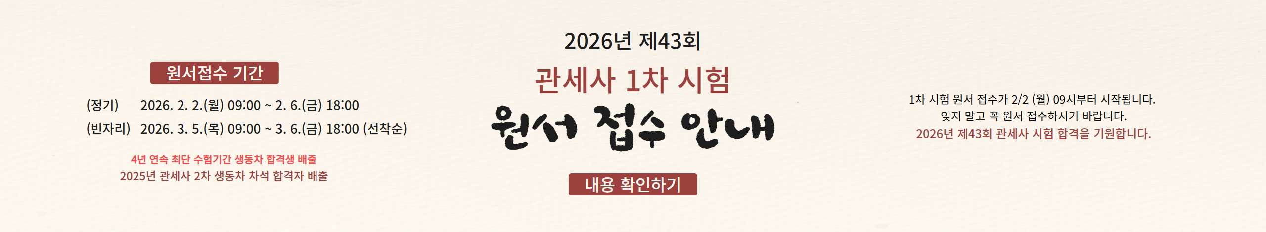 [안내] 2026년 제43회 관세사 1차 시험 원서 접수 안내