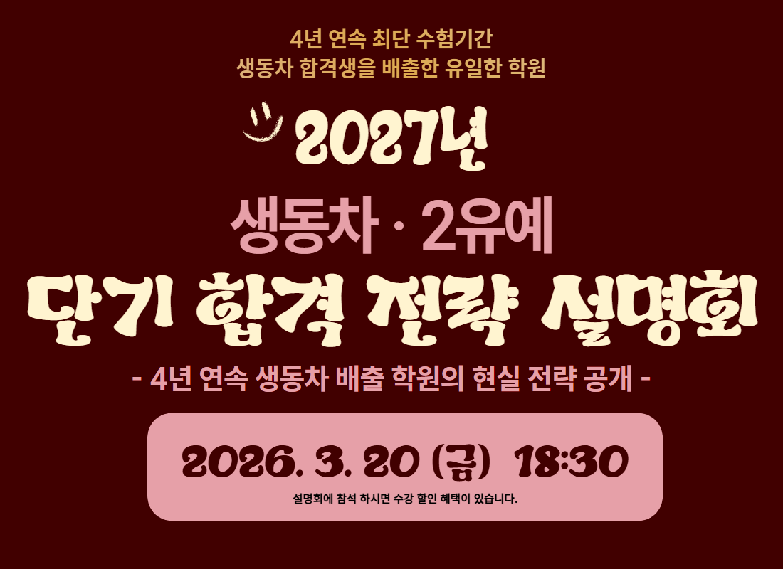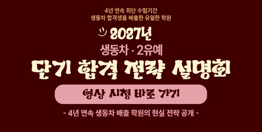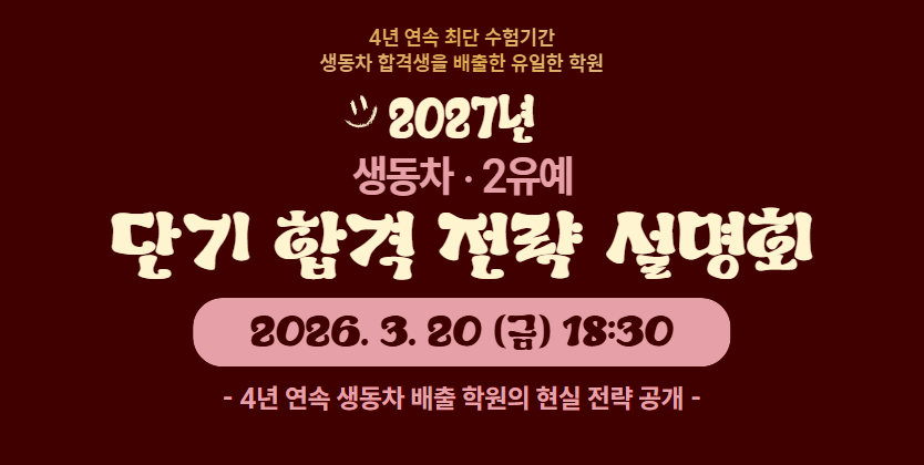 [설명회] 2027년 생동차, 2유예 단기 합격을 위한 전략 설명회 안내