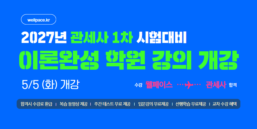 [접수] 2027년 관세사 1차 시험대비 5~6월 학원 강의 개강 안내입니다.