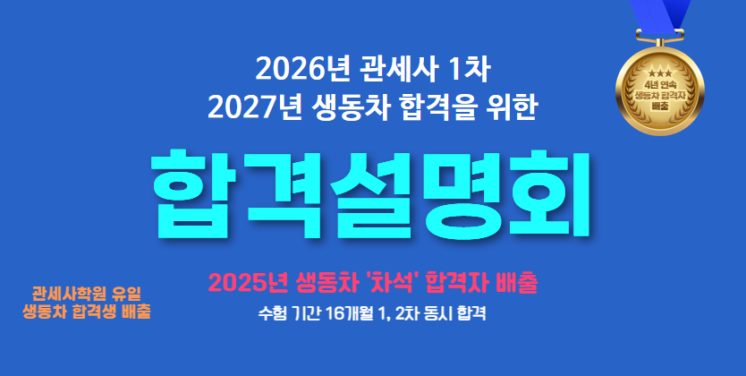 [안내] 2026년 관세사 1차 및 2027년 생동차 합격을 위한 설명회 개최
