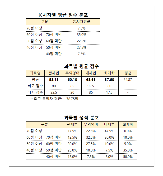 - 회계학 난도 최상(어려움), 나머지 과목 평이
