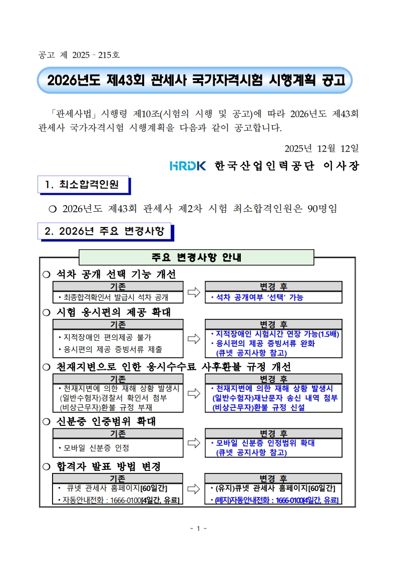 2026년 관세사 시험 계획이 공고되었습니다.