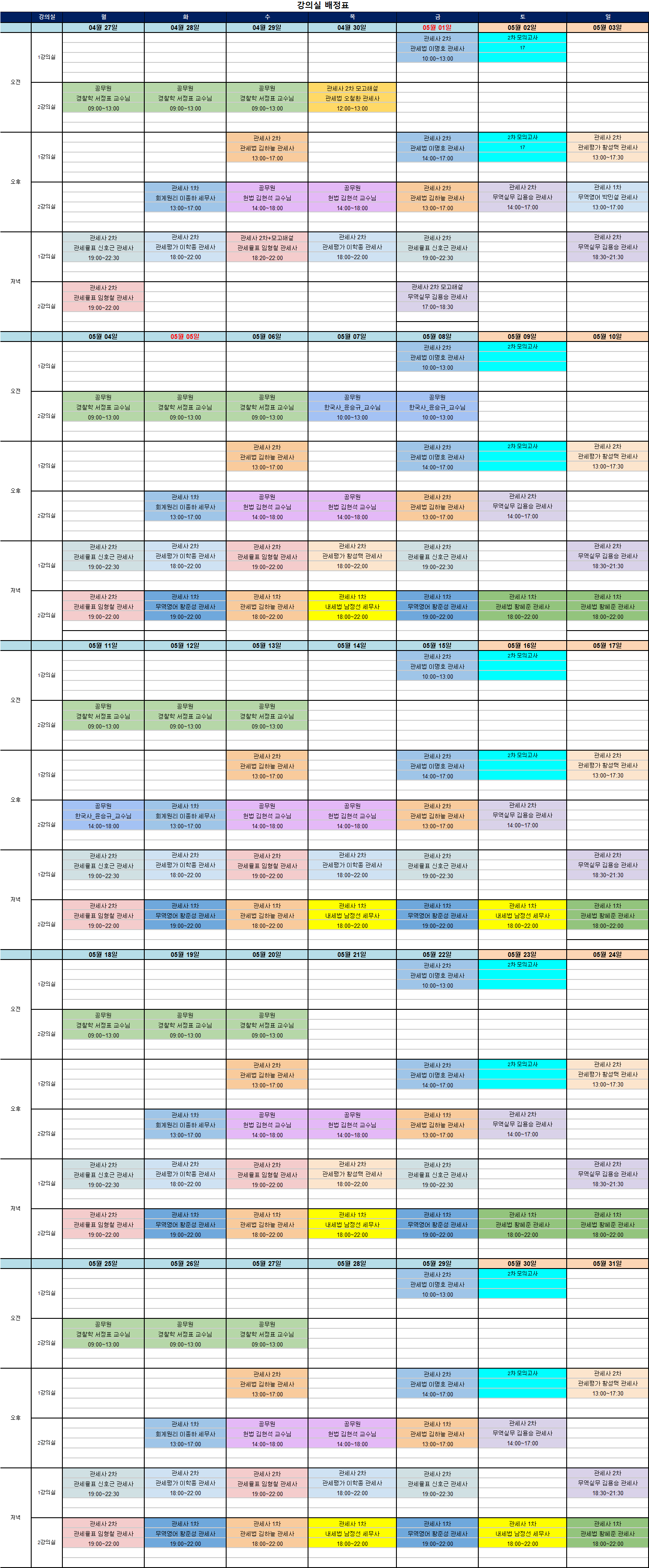 2026년 5월 자습실 및 강의실 배정안내입니다.