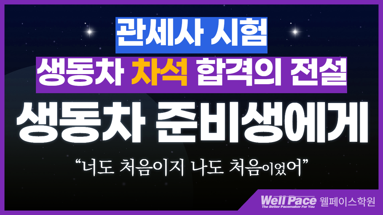 웰페이스 관세사 시험에서 유일하게 연속으로 생동차 합격생을 배출하고 있습니다.