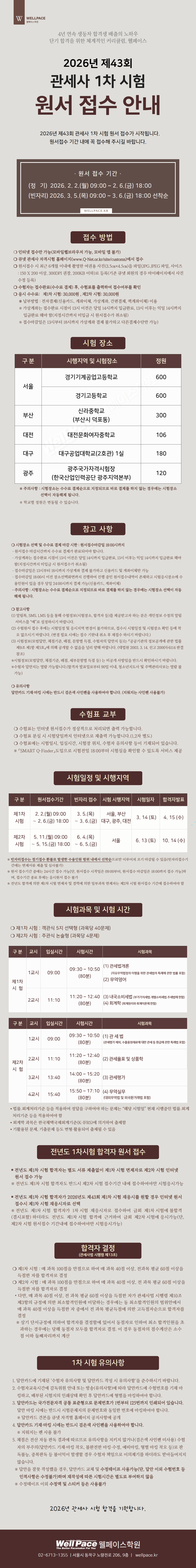 [안내] 2026년 제43회 관세사 1차 시험 원서 접수 안내