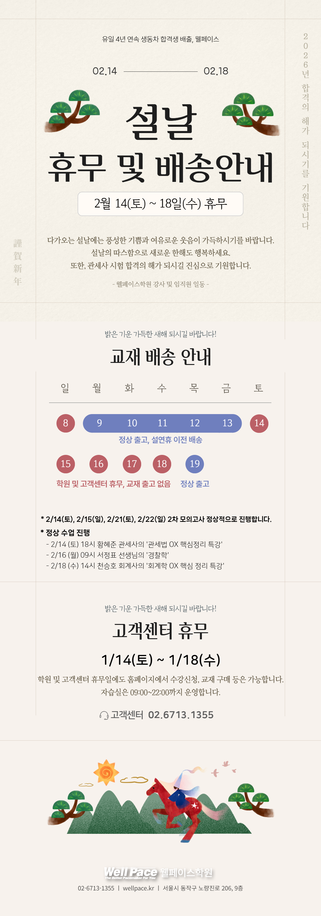 [안내] 설날 연휴 고객센터 휴무 및 교재 배송 안내