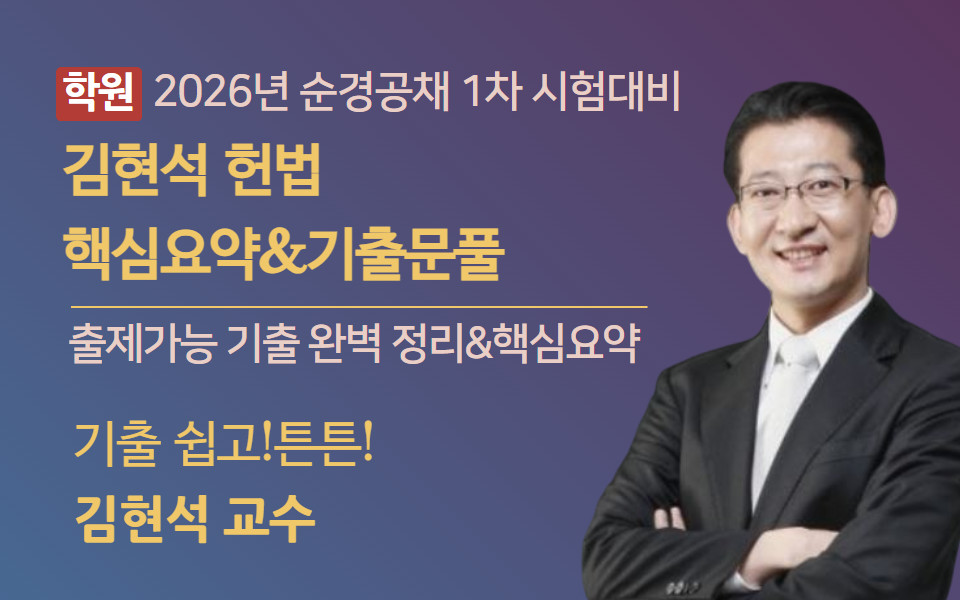 김현석 헌법 핵심요약 정리 및 기출문제풀이 완벽 대비 학원 실강반입니다. 출제 예상 기출 집중 과정! 정상가 14만 6천원에 46%할인으로 진행 됩니다.